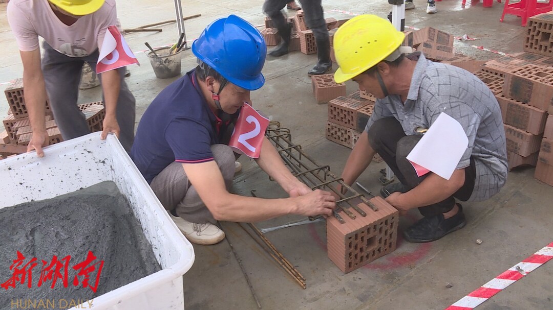 比赛过程中,工匠们分工合作,忙而不乱,耐心细致地进行运料、砌砖、抹灰、测量、找平等步骤。经过1个多小时的施工,各代表队相继完工,裁判组对大家的成果进行了检验评分。最终,“乡村工匠”组,广发镇代表队、龙潭镇代表队分别获得墙体砌筑、钢筋安装项目一等奖;“在建项目工匠”组,郴州市鸿业建筑工程有限公司、郴州市恒广建筑有限公司分别获得墙体砌筑、钢筋安装项目一等奖。