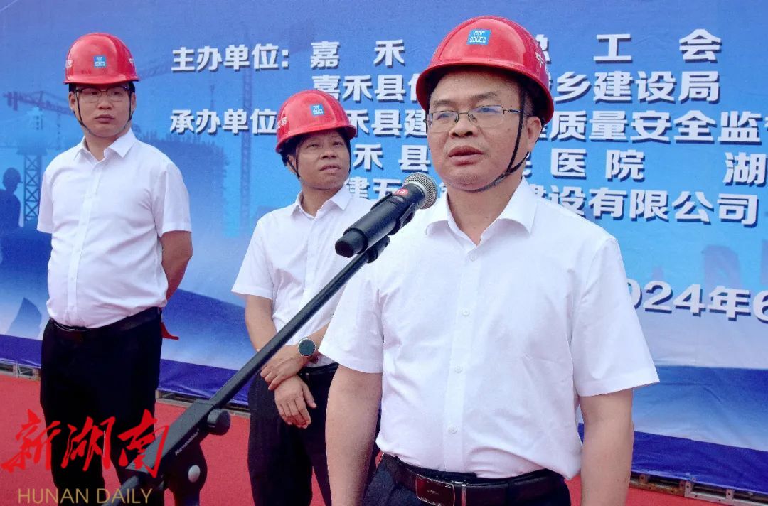 6月18日,由嘉禾县总工会、县住房和城乡建设局主办,县建设工程质量安全监督站、中建五局第三建设有限公司承办的2024年嘉禾县工会和住建系统“安全生产月”活动启动仪式暨“安康杯”建筑行业(乡村工匠)劳动技能竞赛在县人民医院分院建设项目一期工地举办。县人大常委会副主任、县总工会主席邝志林出席活动。县总工会党组书记、常务副主席廖莉华致开幕辞。