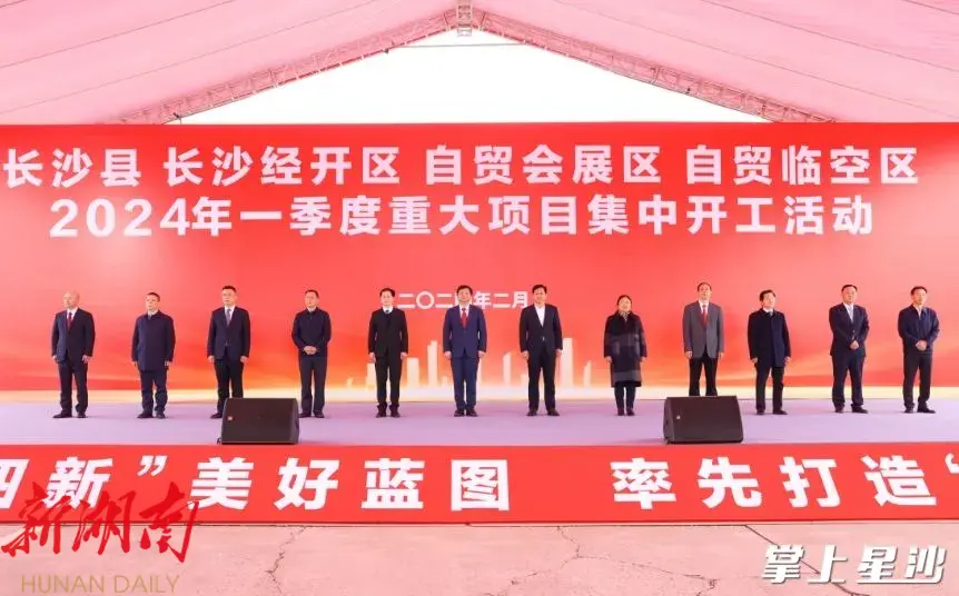 长沙县、长沙经开区、自贸会展区、自贸临空区2024年一季度重大项目集中开工活动现场。
