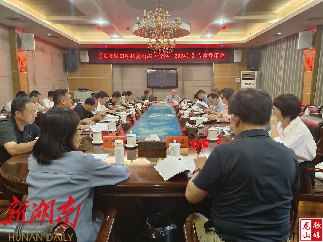 龙山县融媒体中心6月20日讯(记者 刘润)6月19日,《长沙对口帮扶龙山志(1994--2024)》评审会召开。省地方志编纂院党组成员、副院长张征远,长沙市地方志编纂主任、《长沙对口帮扶龙山志》主编李德胜,县领导黎新松、杜宸亿以及《长沙对口帮扶龙山志》编纂审读人员参加会议。