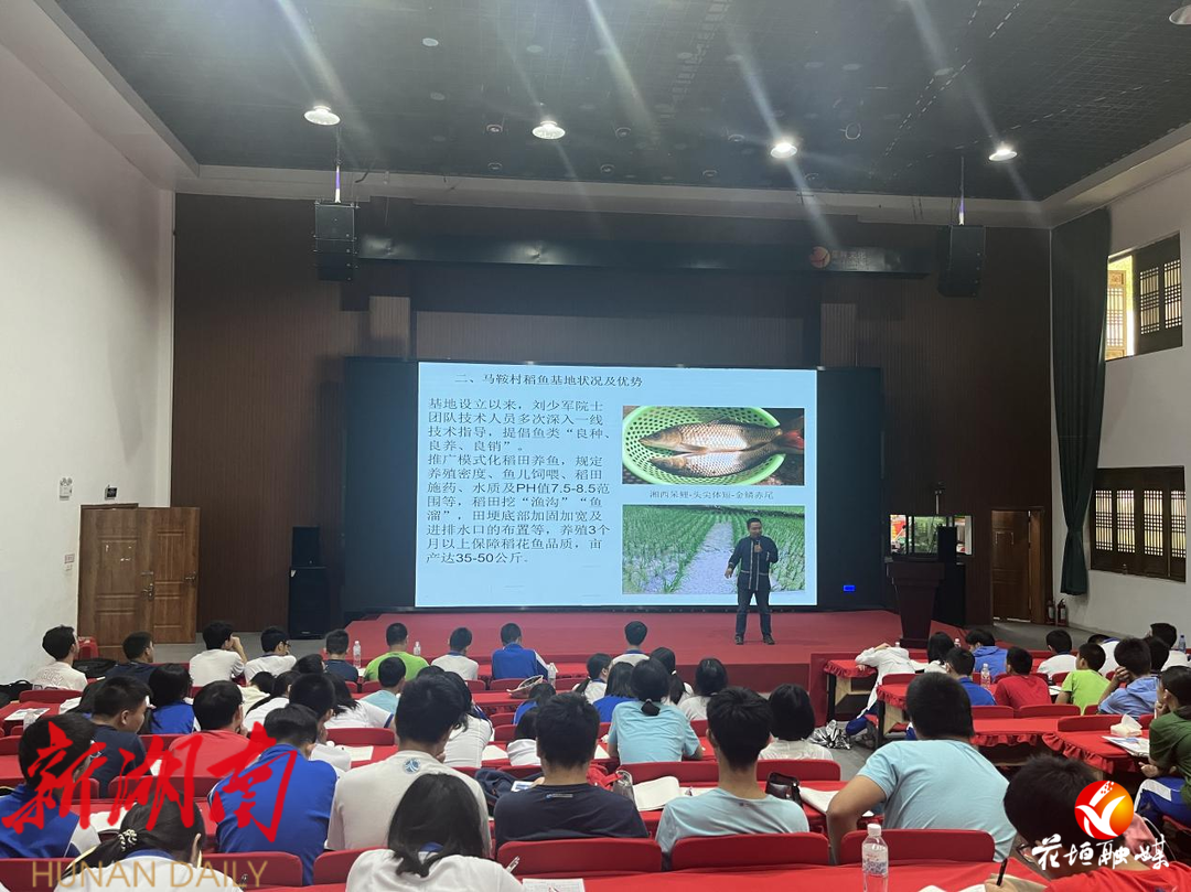 在十八洞村村部多媒体教室,花垣县委党校(十八洞党校)学员石琦应邀为学子们科普稻花鱼知识,双龙镇马鞍村支书、村主任隆贤兵到场推介稻花鱼。课堂围绕稻渔生态价值及历史文化传承、马鞍村稻渔状况及优势、生态技术要点等方面讲解,同时介绍刘少军院士鱼类“良种良养良销”体系。课堂还设置互动问答,寓教于乐,增加趣味性和知识性,学子们纷纷表示获益匪浅。