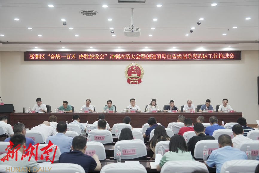 6月21日,蒸湘区召开“奋战一百天 决胜旅发会”冲刺攻坚大会暨创建雨母山省级旅游度假区工作推进会,动员全区上下认识再提高、思想再统一、工作再加力、行动再提速,以临战的姿态、请战的精神、决战的斗志,高质高效完成蒸湘承担的省旅发大会重点文旅项目建设,全力创建雨母山省级旅游度假区,为全市办好旅发大会助力添彩,用优异成绩展现蒸湘担当、作出蒸湘贡献。区委副书记、区长李健出席并讲话,全体在家区级领导参加会议。
