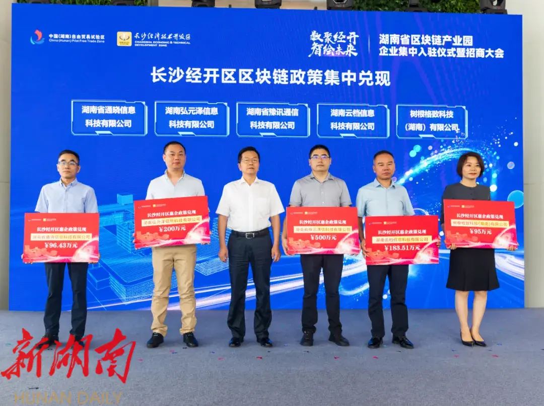 湖南日报·新湖南客户端5月29日讯(长沙经开区工作站记者 陈琪 通讯员 涂好)为加快助力数字湖南建设,全力建设全球研发中心城市、打造具有核心竞争力的科技创新高地,加速“两区”数智化进程,5月29日,“数聚经开 智绘未来”湖南省区块链产业园企业集中入驻仪式暨招商大会在长沙经开区举行。