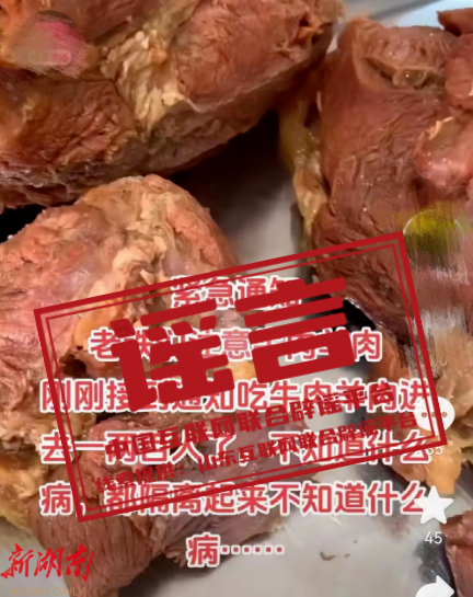 真相: 6月21日,山东枣庄滕州市一网民在短视频平台发布消息称:“刚接到通知说因吃牛肉、羊肉致一两百人被隔离,不知道什么病”,引发关注。经相关部门核查,该消息为不实信息,滕州市近期并未发生此类事件。当事人因为造谣传谣行为被滕州市公安局处以行政拘留5日、罚款500元的行政处罚。(来源:山东互联网联合辟谣平台)