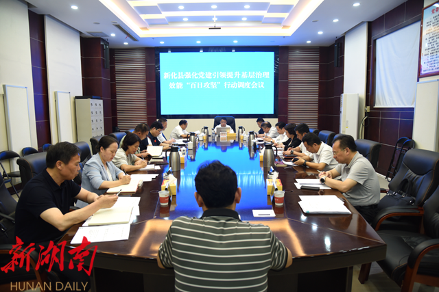 湖南日报·新湖南客户端6月28日讯(通讯员 邹畅宁 刘文)6月26日,新化县委书记李铁雄主持召开强化党建引领提升基层治理效能“百日攻坚”行动调度会议。他强调,要做到心中有底、手中有招、肩上有责,全面掌握攻坚进度,破解攻坚难点,提升攻坚质效,以高质量问题整改促进高质量攻坚成效和高质量发展。县委副书记、县长彭韬及全体在家县领导出席。
