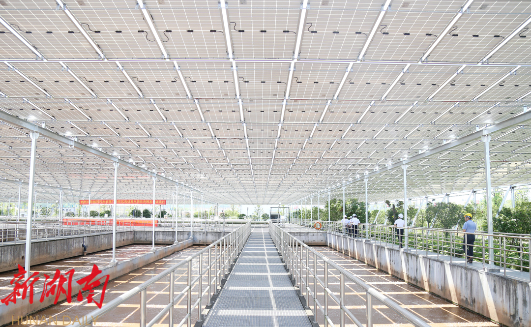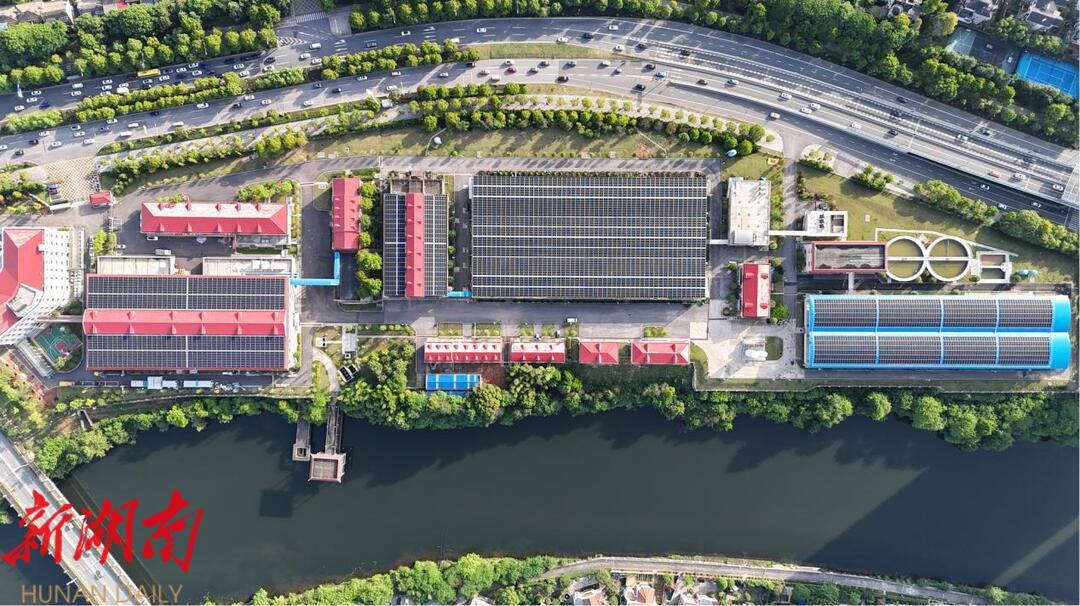 湖南日报·新湖南客户端7月1日讯(长沙经开区工作站记者 欧亚琦)如果从空中俯瞰长沙经开区星沙自来水厂,你将看到一幅红蓝相间的几何画作毗邻着碧绿的捞刀河水。红色的是厂区原本的屋顶,蓝色的则是覆盖在屋顶斜面上的5096块太阳能光伏板,它们共同组成了一片面积1.6万平方米的分布式光伏发电站。
