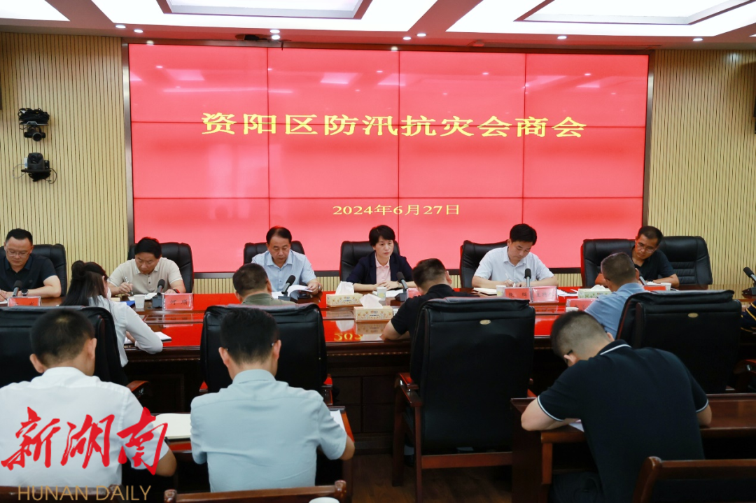 6月27日,区委副书记、区长、区防指指挥长黄瑛在区水利局组织召开资阳区防汛抗灾会商会。区委副书记、统战部部长、区防指常务副指挥长张辉,市总工会党组书记、副主席徐志成及相关部门主要负责人参加会议。