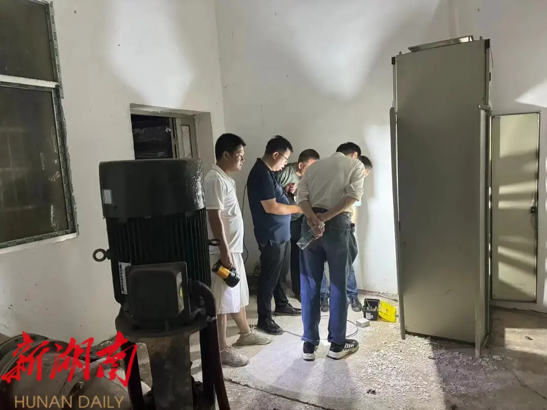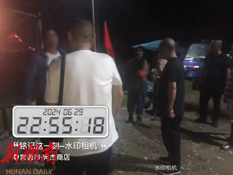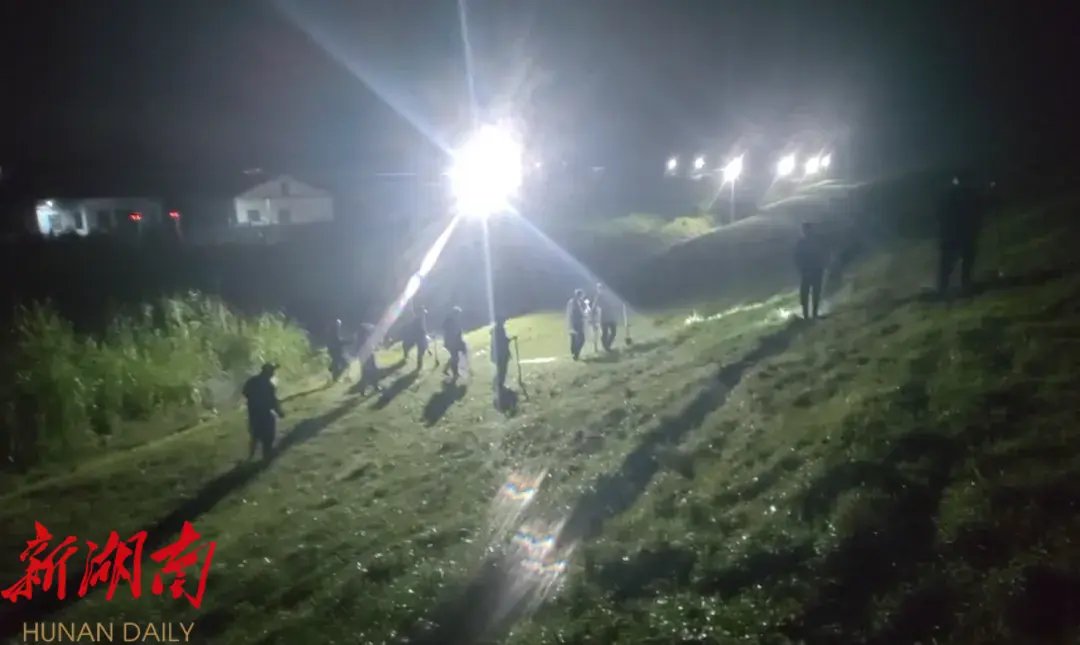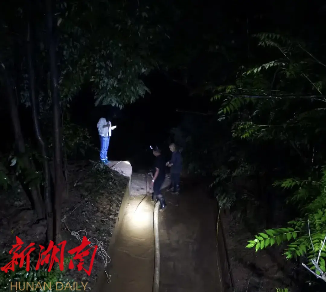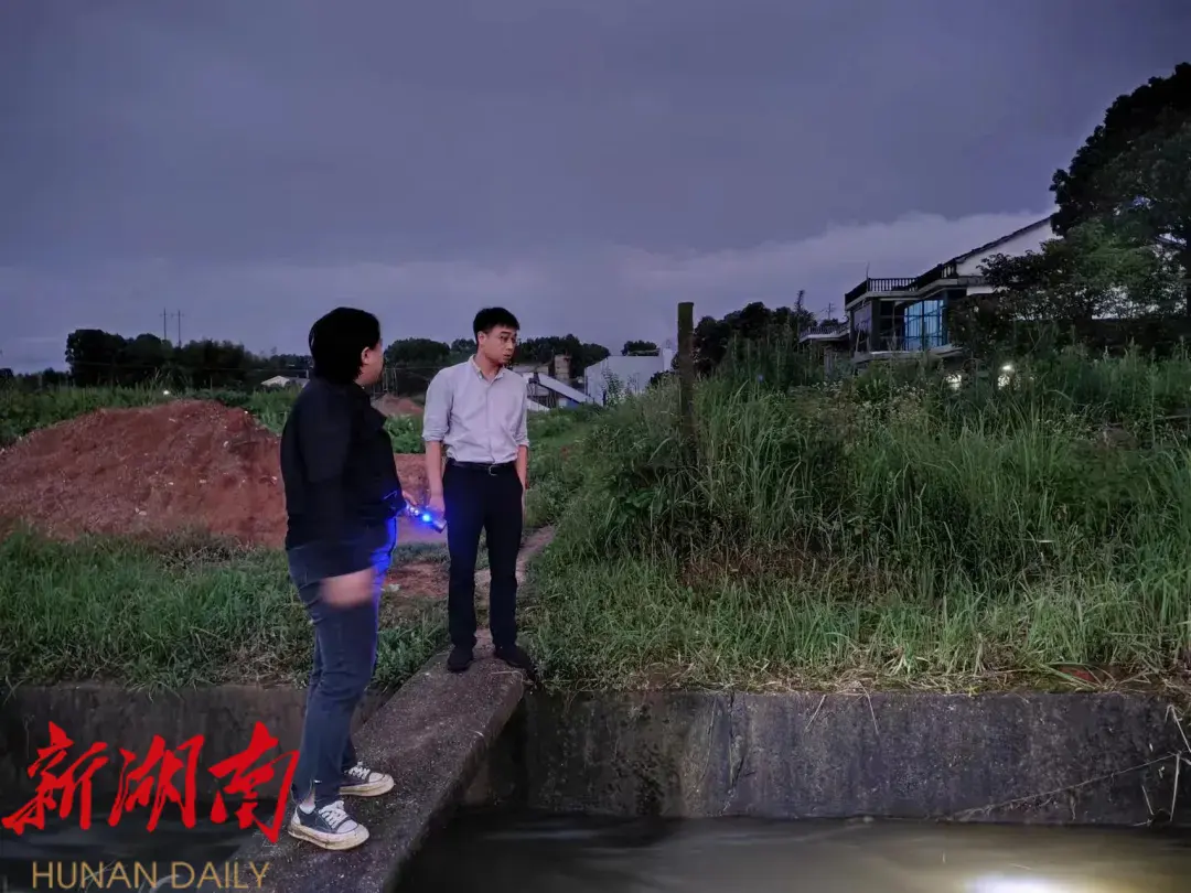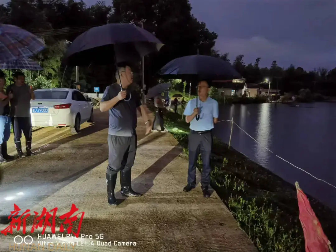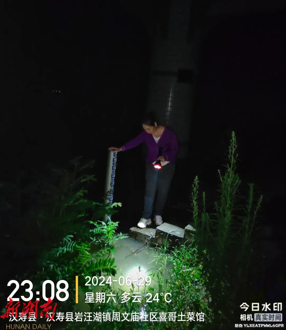 6月29日,县人民政府副县长李辉夜巡毛家滩八塘水库。(汉寿融媒)