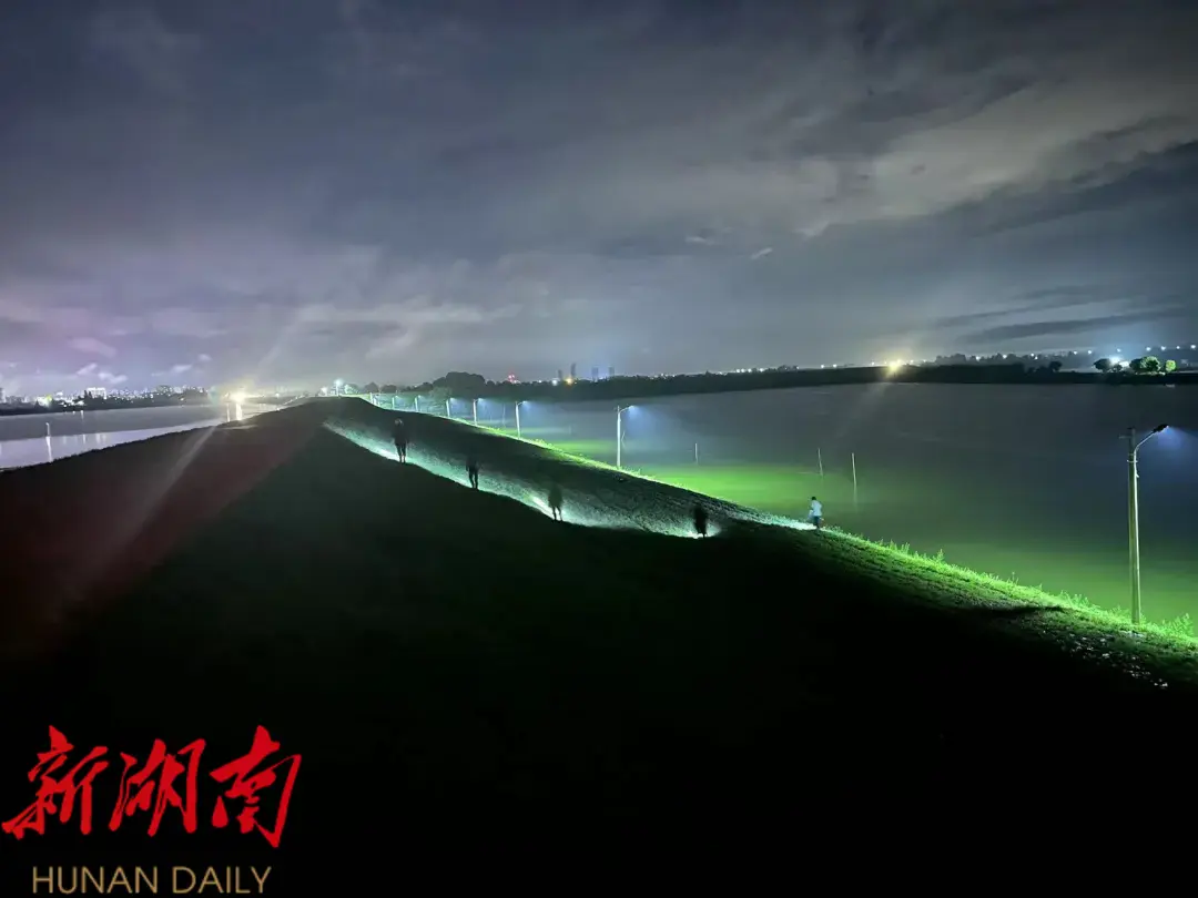 6月29日晚,县农业农村局对马家铺堤段的防洪能力、防汛人员的在岗情况及隐患情况进行全面排查。(通讯员:朱燕)