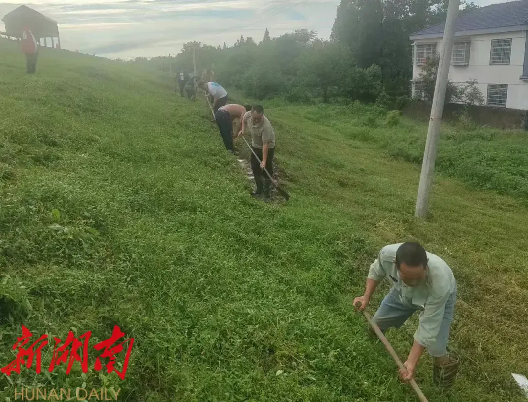 6月29日下午,岩汪湖镇组织干部群众完成撇洪河和沅南大堤沿线防汛棚搭建、防汛照明灯架设、堤脚杂草去除和导沥沟的清淤沥水等工作,并着重对穿堤建筑物和堤坡路段巡逻检查。(通讯员: