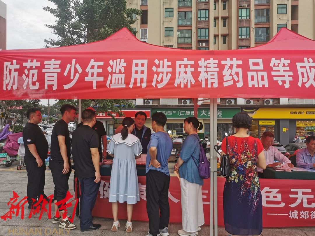 湖南日报·新湖南客户端7月1日讯(通讯员 喻放军 赵琼)6月28日,宁乡市城郊街道禁毒办、社会禁毒分会、城郊街道政协委员工作室在“五街国际”广场联合举办了一场以《防范青少年滥用涉麻精药品等成瘾性物质》为主题的禁毒宣传活动。