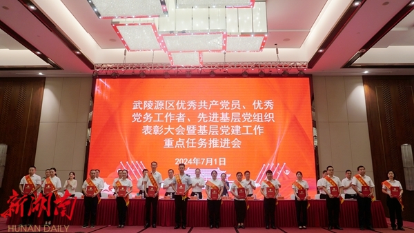 湖南日报·新湖南客户端 7月1日讯(记者 覃蕾 通讯员 陈城 周以恒)7月1日,武陵源区优秀共产党员、优秀党务工作者、先进基层党组织表彰大会暨基层党建工作重点任务推进会议召开,回顾党的光辉历程,讴歌党的丰功伟绩,表彰全区优秀共产党员、优秀党务工作者和先进基层党组织,动员全区各级党组织认真履行党建责任,贯彻新时代党的建设总要求和党的组织路线,努力在各自岗位上作示范、当先锋,为率先建成世界一流旅游目的地和全面建设现代化新武陵源贡献力量。区委书记张龚出席会议并讲话,区委副书记、区长吴俞萍主持会议。