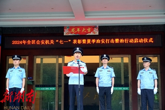 湖南日报·新湖南客户端 7月1日讯(记者 毛娟 通讯员 郭泳 吴惟肖)为庆祝中国共产党成立103周年,继承和发扬党的优良传统,表彰先进、激励士气,7月1日,武陵源区公安分局举行2024年全区公安机关“七一”表彰大会暨夏季治安打击整治行动启动仪式。区人民政府副区长、区公安分局党委书记、局长龙军平出席仪式并讲话。