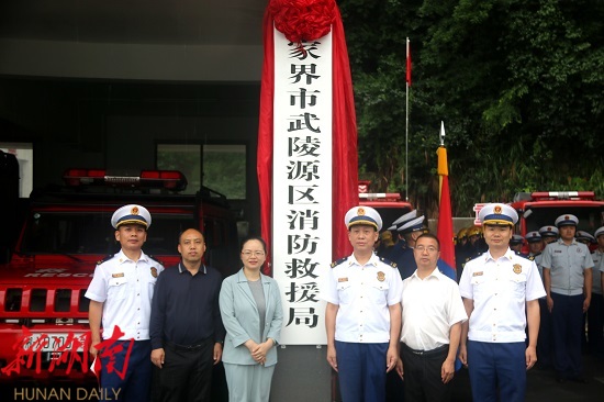 湖南日报·新湖南客户端7月1日讯(通讯员 邓雁)6月28日,张家界市武陵源区消防救援局挂牌仪式举行。武陵源区委副书记、区长吴俞萍,市消防救援支队党委副书记、支队长周宏,区委常委、常务副区长董波参加。