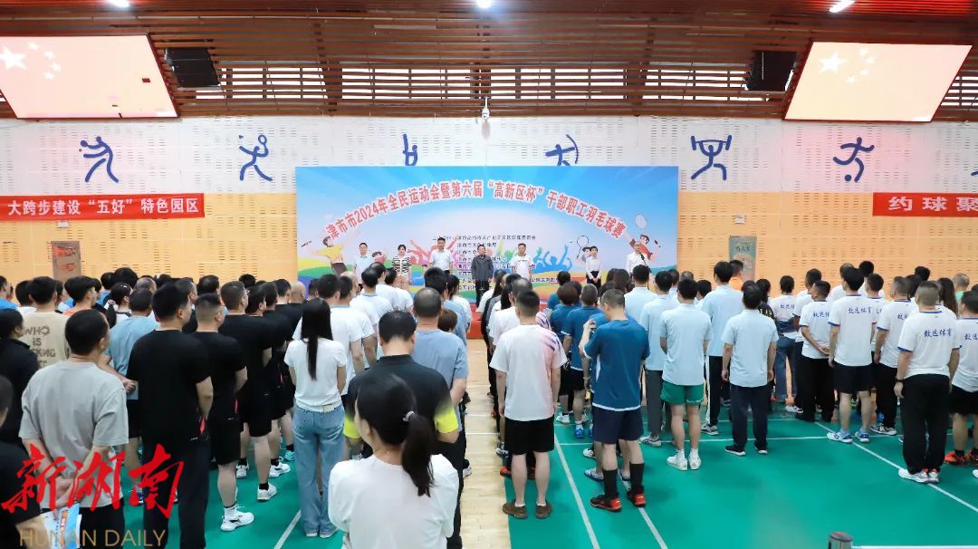 6月28日,由市高新区、文旅广体局、总工会主办,凝聚羽毛球协会承办的津市市2024年全民运动会暨第六届“高新区杯”干部职工羽毛球赛,在市五环体育馆举行。