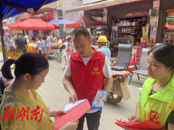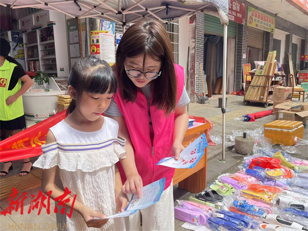 7月1日,广发镇组织镇妇联、团委、民政办、社工站等部门,在集市上开展防溺水安全知识宣传活动。