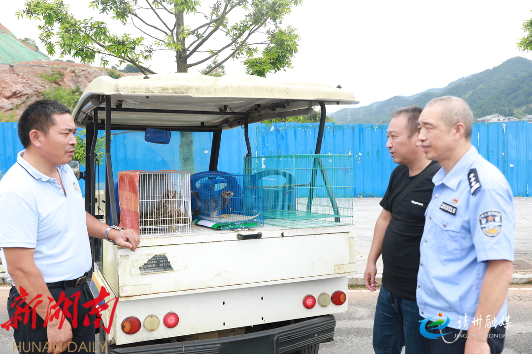 靖州融媒7月3日讯 (记者 徐鲁湘 通讯员 李红东 杨叶舟)7月2日,靖州苗族侗族自治县森林公安局、林业局联合成功救助了两只国家二级保护动物,并将其送往怀化市野生动物园野生动物救助站做进一步的救治。
