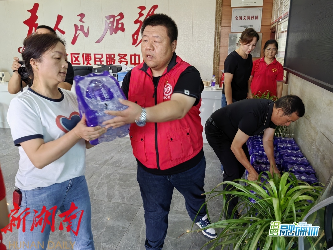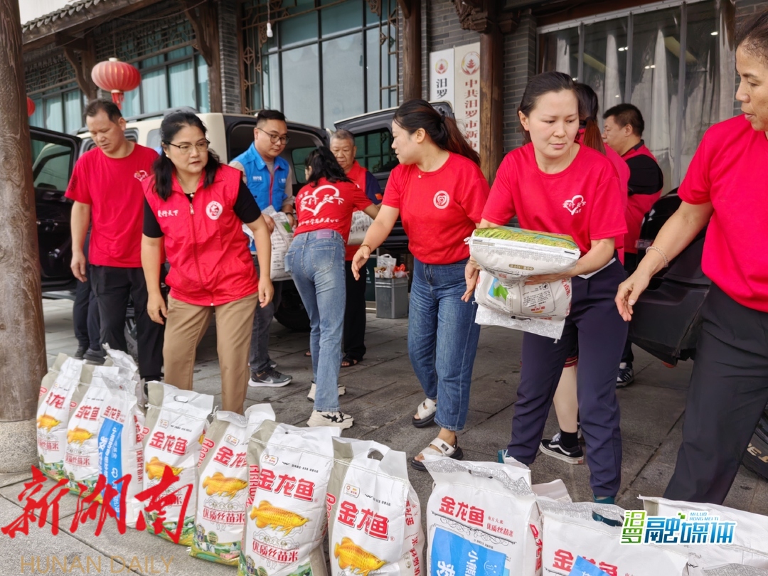 湖南日报·新湖南客户端7月3日讯(通讯员 夏凡 胡清)洪水侵袭汨罗。连日来,汨罗市爱行天下志愿者协会、汨罗市同心社会发展中心的志愿者马不停蹄,将矿泉水、大米、食用油等救援物资送到新市镇新市社区、新栗社区及罗江镇罗江村等受灾较为严重区域的群众手中。