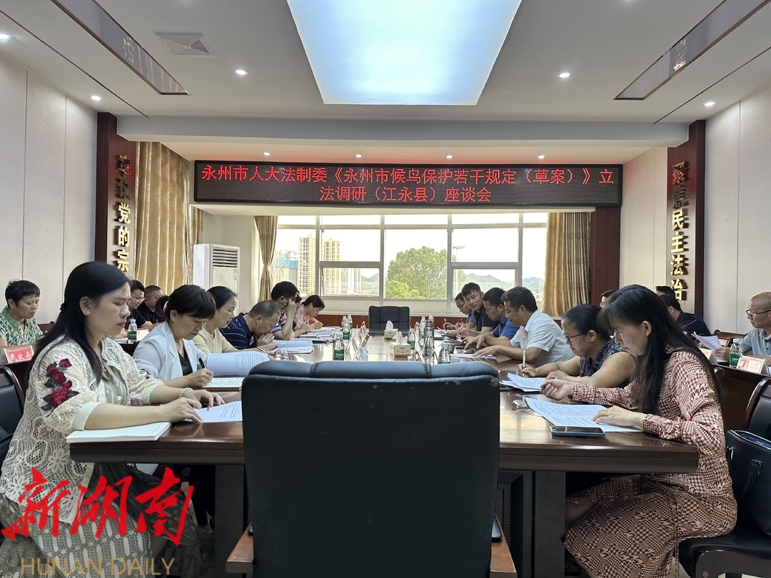 座谈会上,调研组听取县人大法制委、农业农村委等相关单位就候鸟保护和古树名木保护情况进行汇报,并围绕《永州市候鸟保护若干规定(草案)》调研主题,对相关立法的必要性、可行性及立法需要解决的重点问题进行交流探讨。