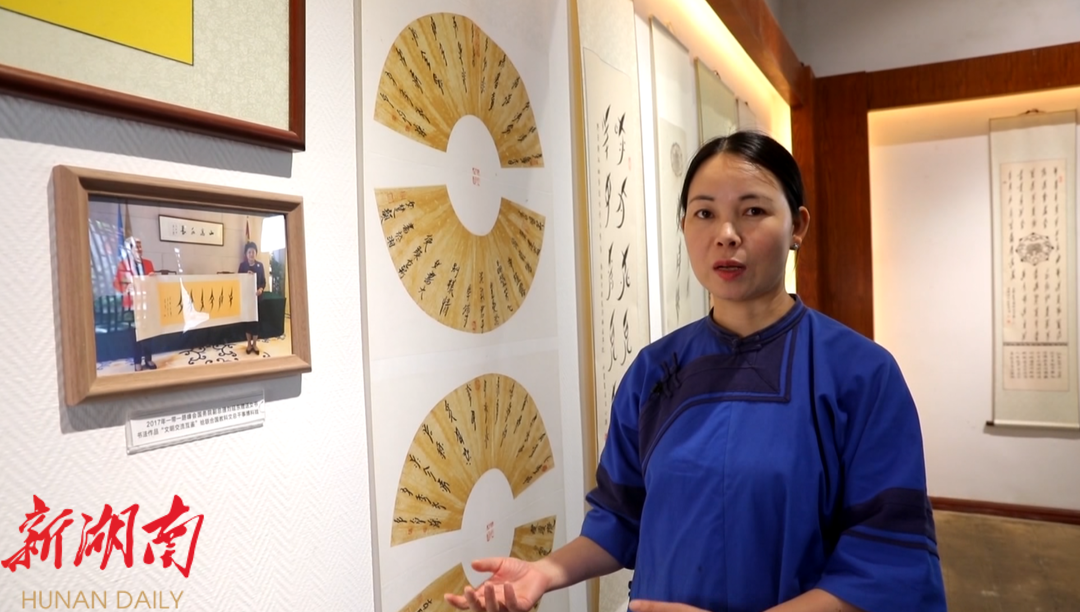 女书传承人胡欣说道:“ 这幅作品的内容是文明交流互鉴,送给了前来参加“一带一路”峰会的联合国总干事博科娃。”