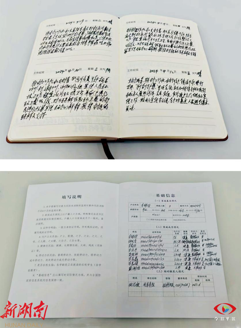 打开驻村日志,上面密密麻麻记录着张滔根一年来在咏生村驻村工作每天的所见、所干、所思。结对帮扶联系手册上,更是认认真真详细记录着每一位结对帮扶对象家庭详细信息和走访记录。