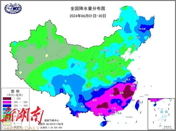 今年6月,南方地区经历了旷日持久的强降雨,中央气象台从6月10日开始连续21天发布暴雨预警,其中4天更是发布了最高级别的暴雨红色预警。统计数据显示,长江以南地区6月的累计降雨量普遍达到300至500毫米,其中广西、湖南、江西、浙江、福建、安徽等地部分地区降雨量500至800毫米,局地800毫米以上。