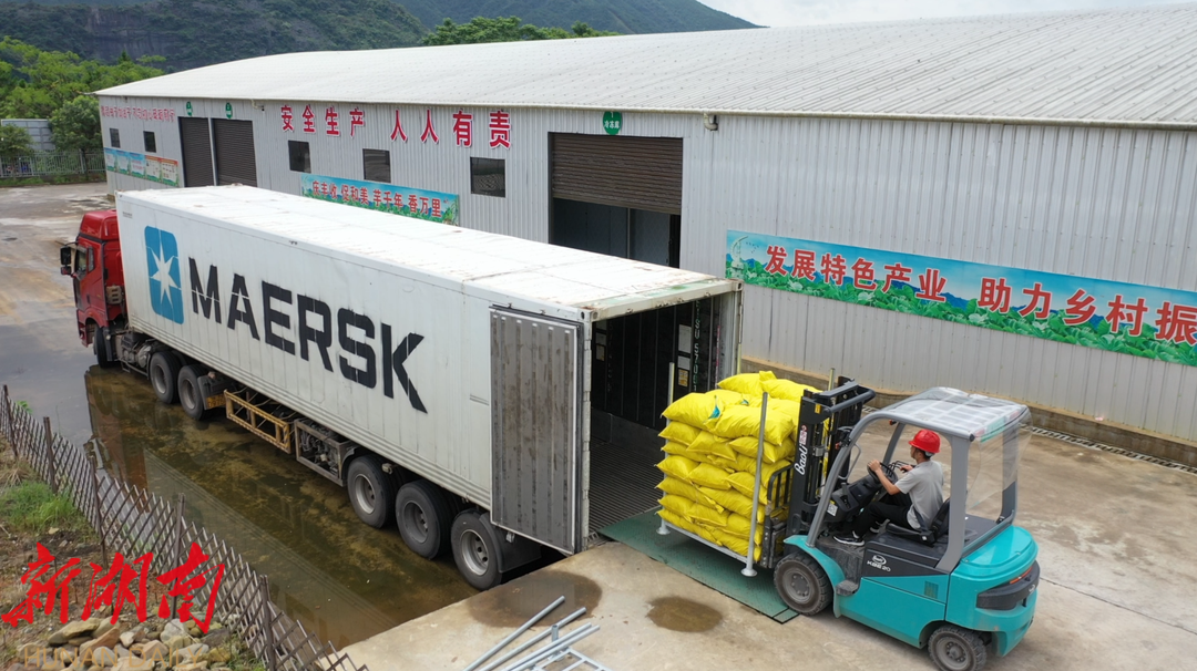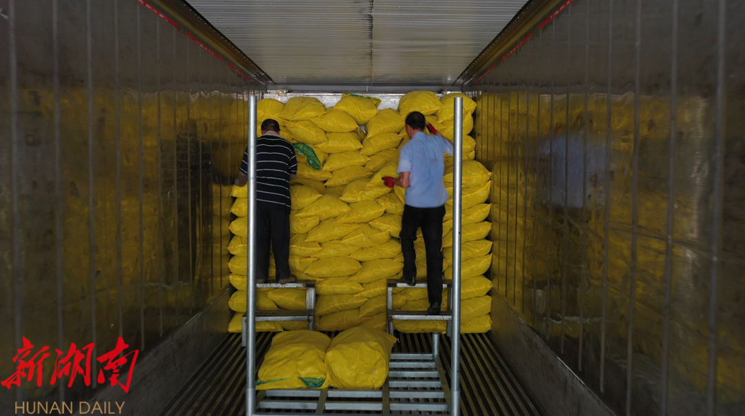 在江永县千家峒瑶族乡的五香食品有限责任公司,一袋袋刚经过速冻的香芋条正在打包装车,准备发往外地市场。