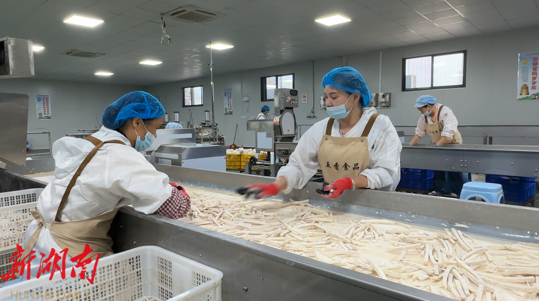 近年来,江永县高度重视香芋产业发展,扶持引导村民走产业化、规模化、基地化的特色农业发展路子。同时,持续在香芋深加工方面发力,提升香芋的附加值,培育壮大了15家香芋加工企业,五香食品有限责任公司就是其中之一。自2021年公司成立以来,从传统的香芋粗加工衍生到冷冻制成芋头条、芋头片、芋泥、芋圆等多种半成品、成品。日均流水线加工产品达到30吨,产品销往国内商超以及东盟国家,并且每年都会与农户签订购销合同,通过种、管、销一条龙无缝对接,确保芋农增产又增收。