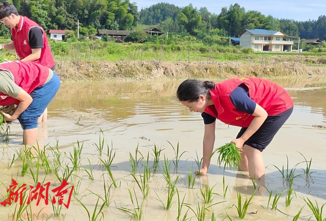 湖南日报·新湖南客户端7月5日讯(通讯员 徐孟璐)连日来的强降雨天气,土桥镇农田有不同程度被淹受损。7月4日,天气放晴,土桥镇组织政府干部、新时代文明实践志愿服务队与群众一起,抢种一季晚稻,进行受灾农田的复耕复产工作。目前,土桥镇已恢复受灾农田面积4860亩,抢种晚稻700亩。