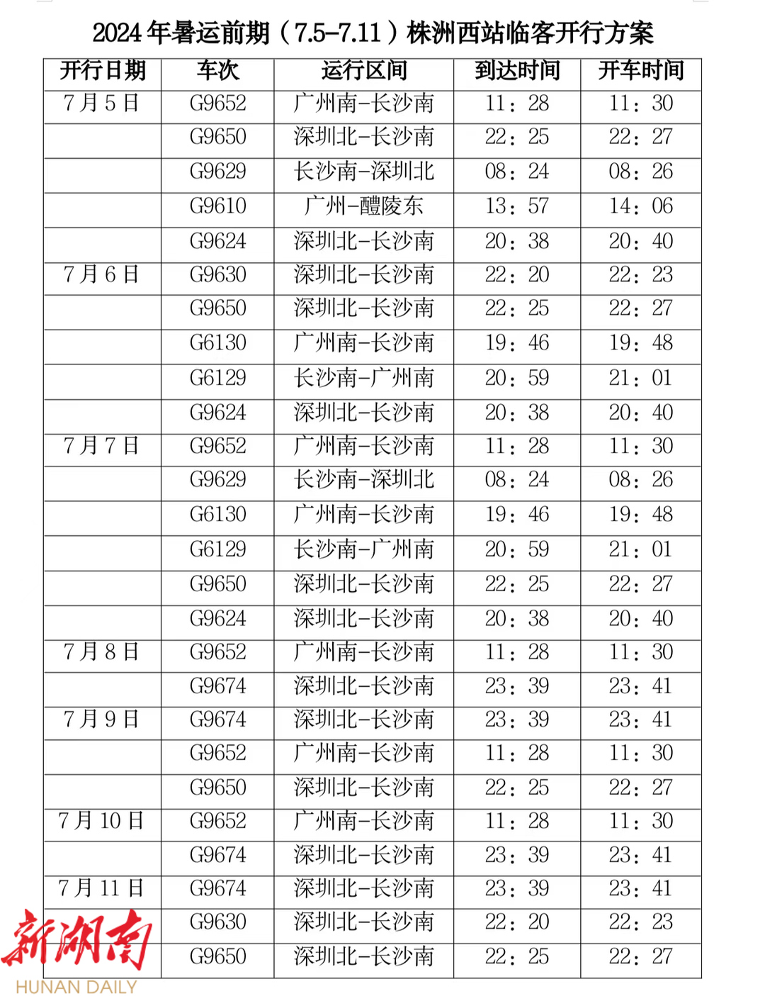 为充分保障广大“神兽”出行需求,株洲西站适时增开多趟临客列车确保运力投放,具体增开时间、车次如下图: