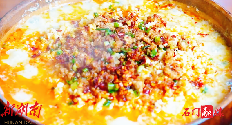 合渣,又名懒豆腐,是一道极富有民族特色的美味佳肴。千百年来,土家族流传有“辣椒当盐,合渣过年”“合渣喝酒,一醉二饱”的民谚。石门土家人不论过节、来客还是平常日子,合渣都是餐桌上的最爱,两人或三五人围桌而坐,就着合渣喝着自酿的苞谷酒,不失为一种乐趣。如今,本土电商企业通过直播带货等形式,将这道石门土家人念念不忘的美食进行推广。