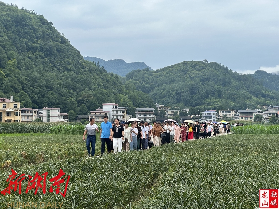 龙山县融媒体中心7月5日讯(记者 马菲)7月4日,湖南省湘西州“乡村振兴·巾帼行动”女性致富带头人培训暨现场推进会的120余名学员走进龙山县惹巴妹手工织品有限公司、湖南省果乐农业科技股份有限公司和湘西天一茶业股份有限公司三家巾帼示范基地,围绕投身乡村振兴建设、发展特色农业产业、带动妇女就业创业等方面开展现场教学,以“沉浸式、互动式”体验教学,在“看与学、行与思”中提升培训质效。湘西州妇联党组书记、主席张明,龙山县委常委、县委统战部部长、龙山产业开发区党工委书记向怿文参加现场推进会。