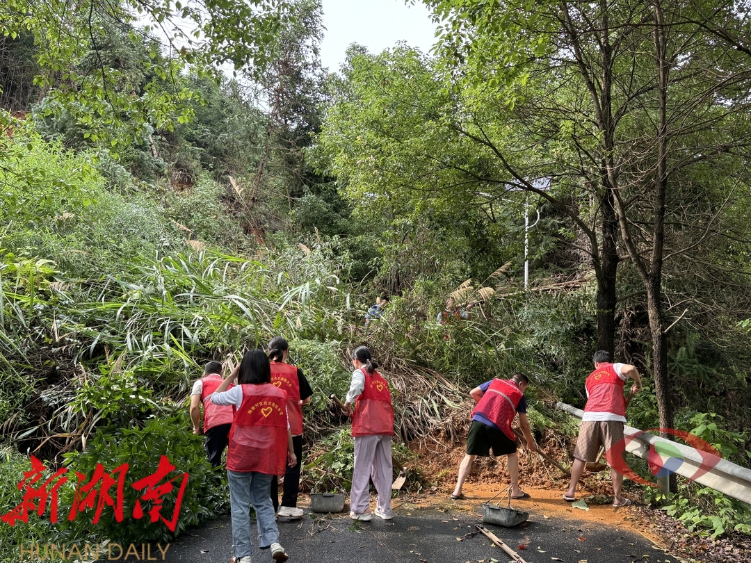 县机关事务服务中心驻清河村工作队队长黄亮向记者镜头 描述情况:“ 现在我们所在位置是平江县加义镇清河村庙湾组加咏公路山体滑坡处,由于6月30日暴雨导致此处7月1日下午2点初夏严重山体滑坡,通讯和交通全部中断,救援队和交通全部中断,救援队和车辆无法进入,驻村工作队与支村两委第一时间拉起警戒线并迅速组织年轻党员干部10余名进行人工抢险,这条路是三个村3000多名群众的必经之路,我们将尽快疏通道路,保障通行。”