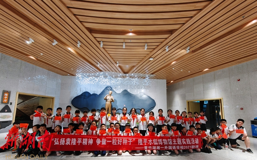 湖南日报·新湖南客户端7月8日讯(通讯员 邱枥娴)近日,开福区青竹湖湘一外国语学校2021级5班的同学们齐聚隆平水稻博物馆,开展研学之旅。在这个行走的课堂中,回望“杂交水稻之父”袁隆平的伟大一生,感受一粒种子如何改变世界。