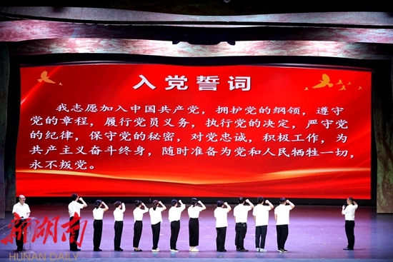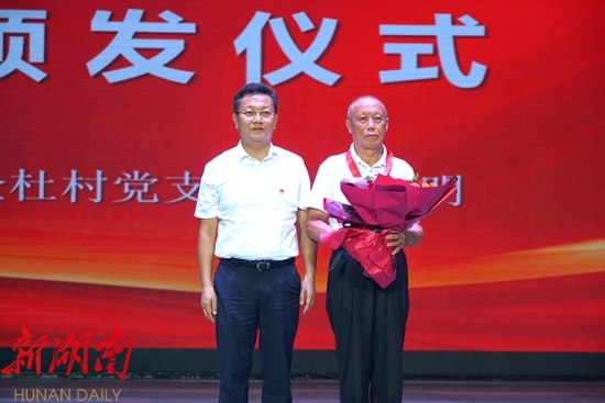 大会在雄壮的国歌声中拉开帷幕,全体党员起立、齐唱国歌。“我志愿加入中国共产党,拥护党的纲领,遵守党的章程……”11名新发展党员列队肃立,举起右拳,许下为共产主义奋斗终身的坚定诺言。铮铮誓言极大激发了全体党员的荣誉感、责任感和使命感。随后,屈辉为金杜村党支部谢子明颁发“光荣在党50年”纪念章,现场掌声雷动,纷纷向这位为党的事业奋斗了半个世纪的老党员致以崇高的敬意。