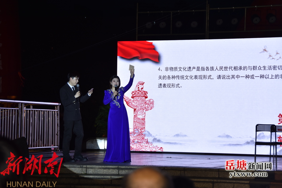演出中还穿插了有奖问答环节,紧扣传统节日、本地非物质文化遗产等内容,吸引了众多观众争先恐后举手抢答。