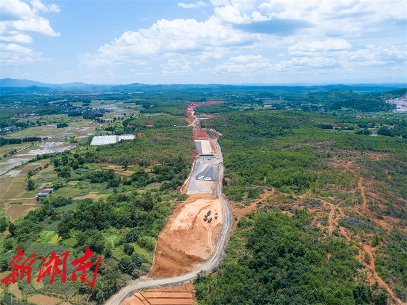 新桂阳 7月10日讯(记者 陈勇 谢新阳)桂新高速,即桂东至新田高速公路,是湖南省“十四五”高速公路建设规划的首批项目之一,也是湖南省高速公路网规划(修编)中“七纵九横”中的第八横。连日来,施工方抢抓晴好天气,不断优化施工方案,为桂新高速工程建设按下“加速键”。