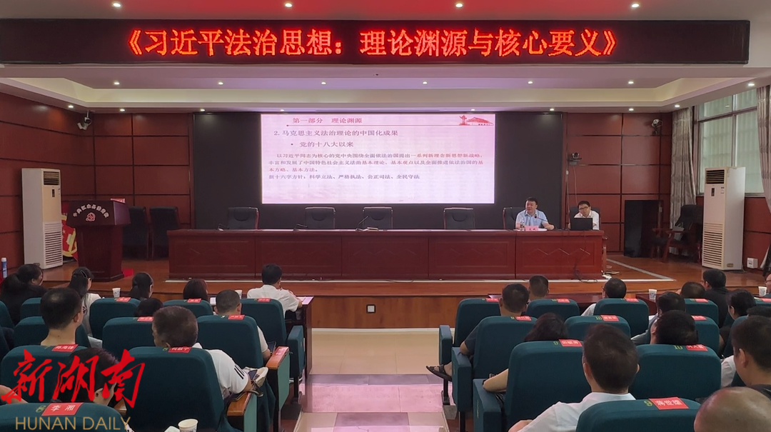 新江永客户端讯(记者 谢文彬 ) 7月9日,县委常委、政法委书记文斌在县委党校为来自县直各单位、乡镇的 80 多名分管政工的副职带来了题为“习近平法治思想:理论渊源与核心要义”的精彩授课。