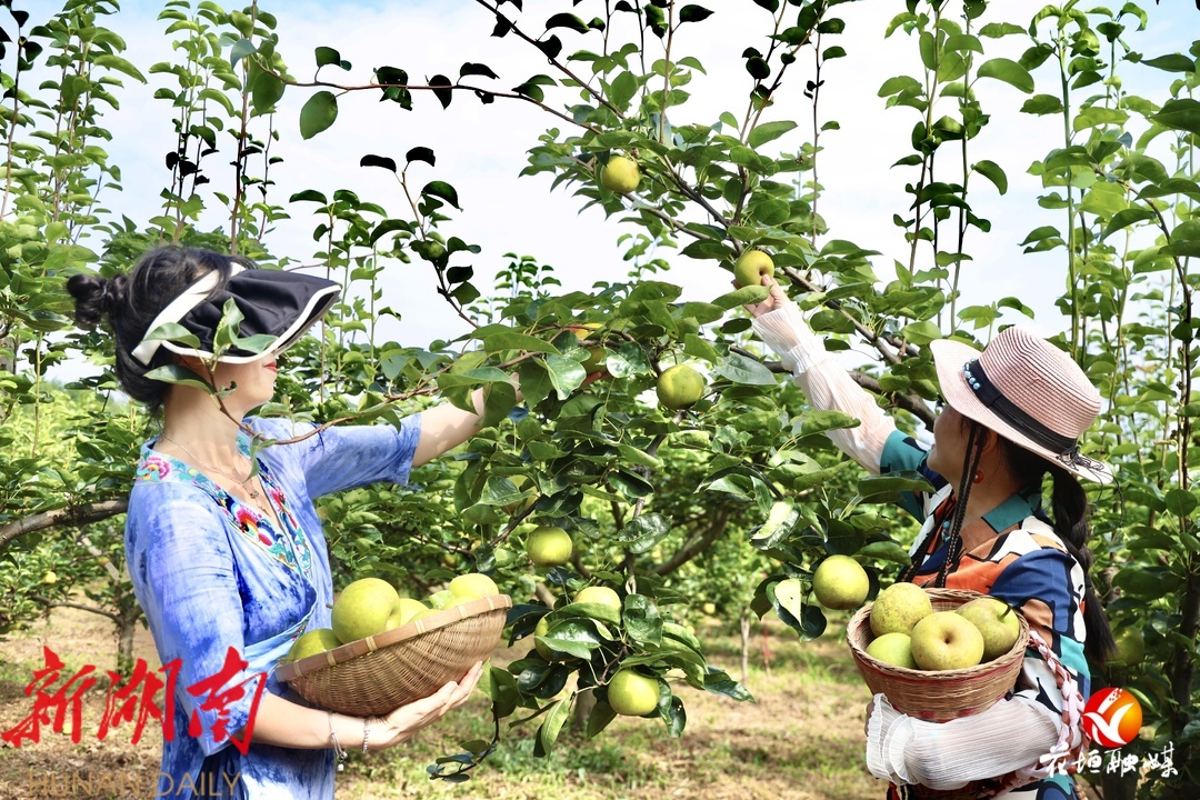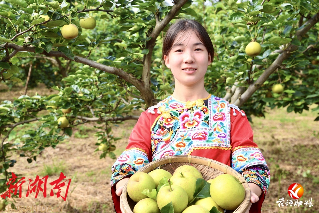 “他们家的梨子确实味道很甜,水分还多,我每年从外地回来都会来他家采摘,如果没回来,也会让老板给我寄出去。”常年在海南生活的花垣人黄蓉是开心农场家翠玉梨的“忠实粉丝”,今年刚回老家探亲的她又听说这里的翠玉梨已经成熟,一大早就邀上自己的姐妹来梨园“尝鲜”。