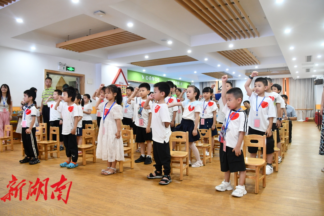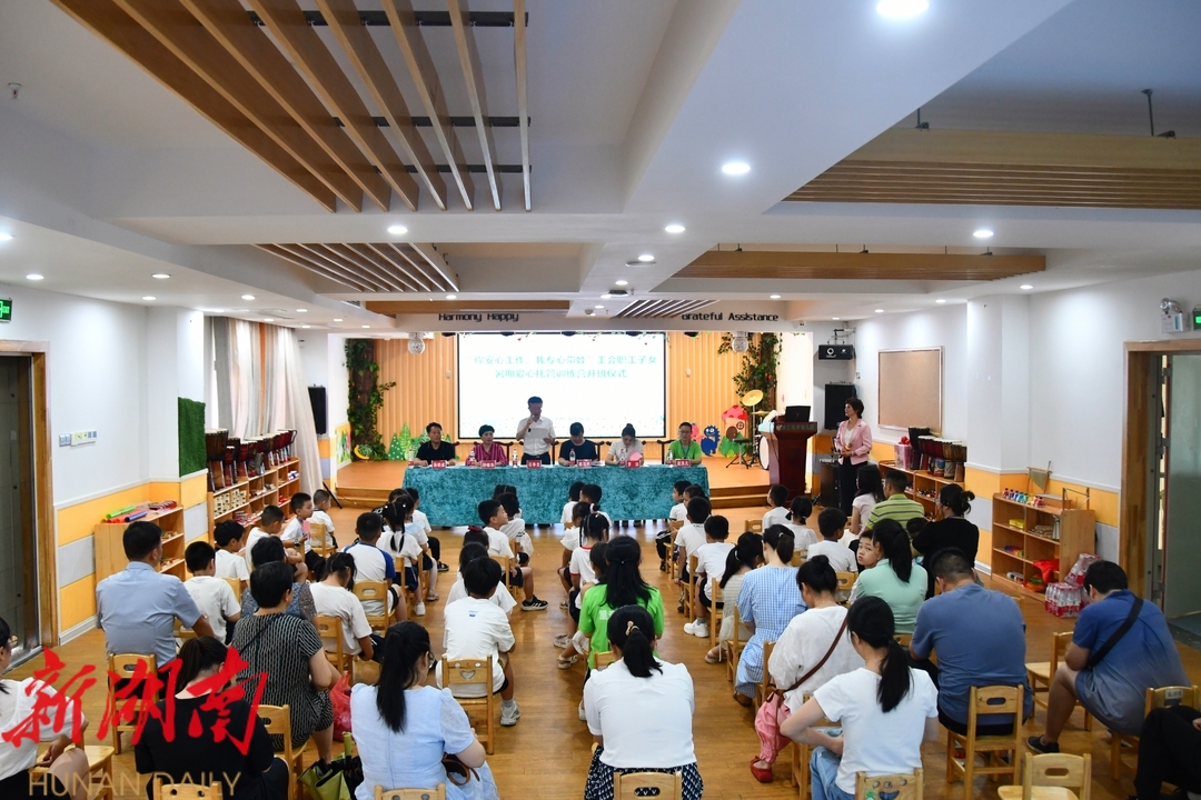 新新邵客户端7月10日讯 7月9日,由新邵县总工会主办,县妇联、共青团新邵县委协办,县“好父母”政协委员工作室、县家庭和谐促进会承办的工会职工子女暑期爱心托管训练营在滨江伟才幼儿园正式开营。