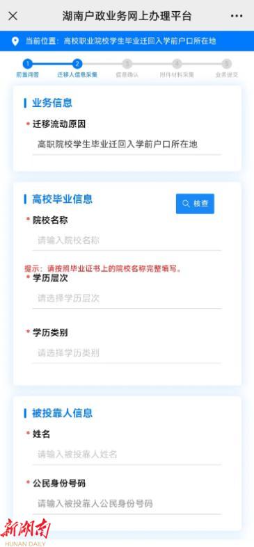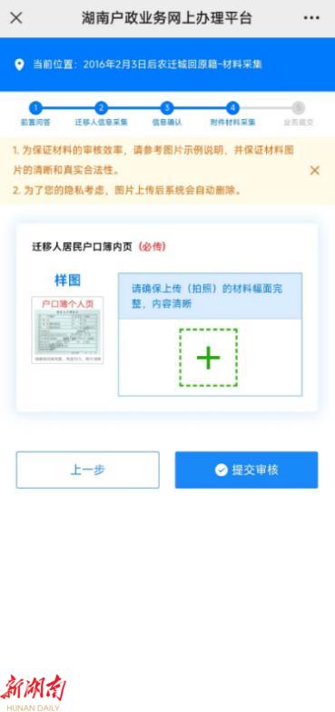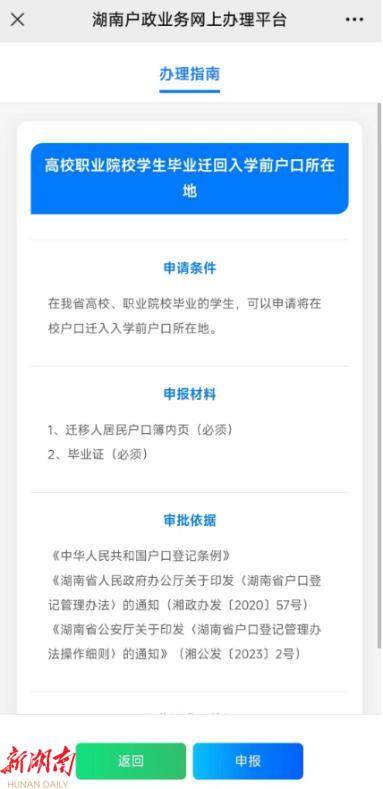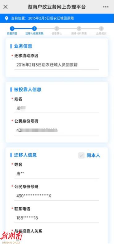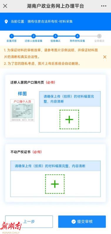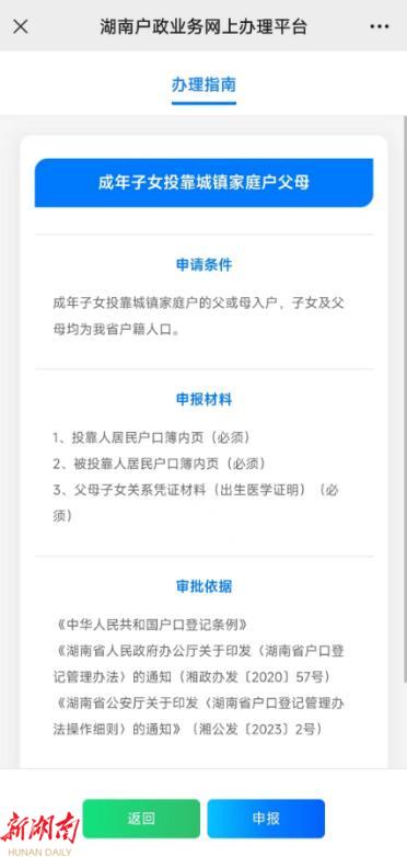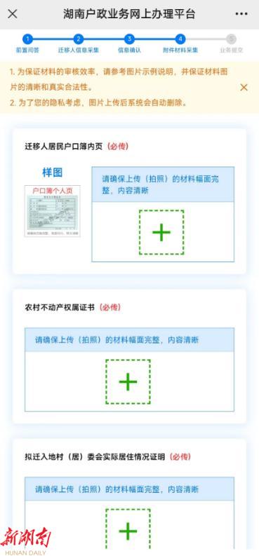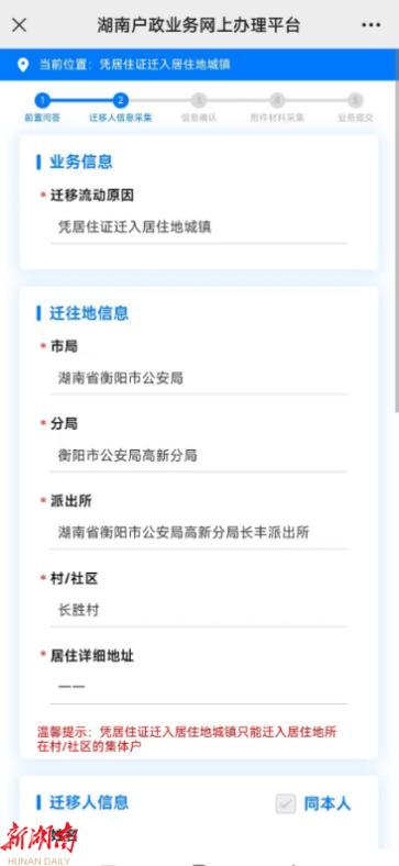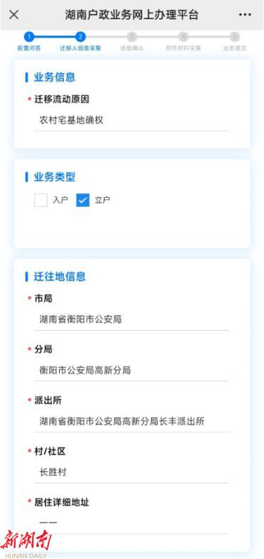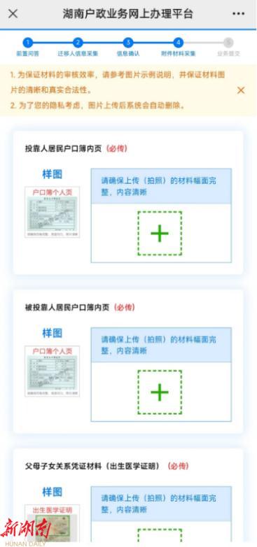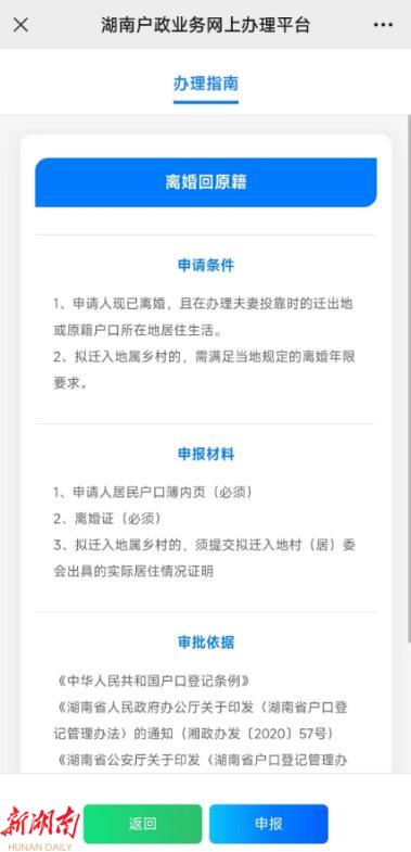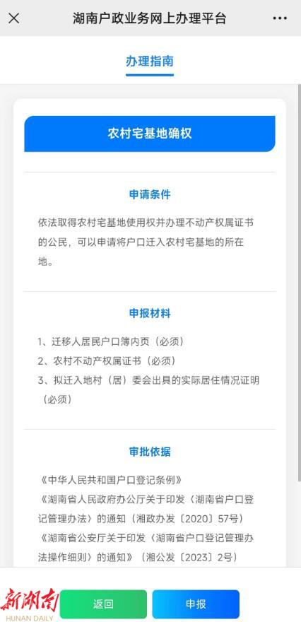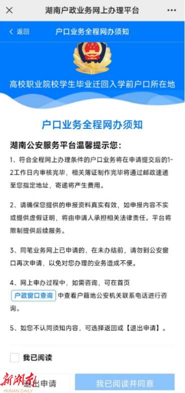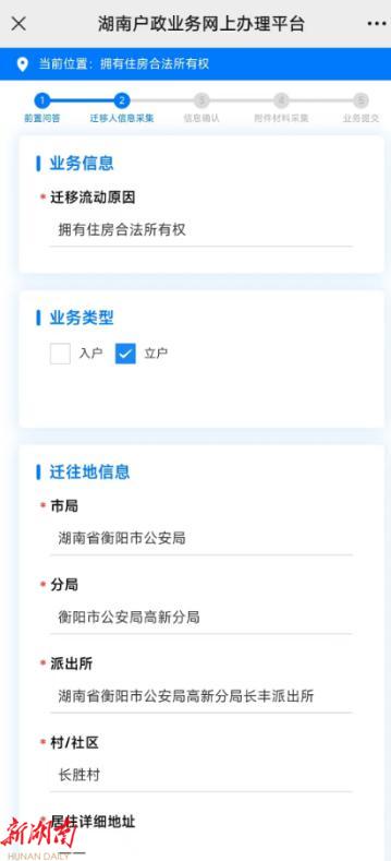 一、湖南户籍居民可微信关注“湖南公安服务平台”公众号,注册并实人认证登录,点击“微警务”,进入平台首页,在热点应用栏中选择“户口业务全程网办”,进入湖南户政业务网上办理平台,在“我要办理”菜单中选择你要申办的业务类型,阅读网办须知,填写相关信息,拍照上传证明材料,提交办件申请。