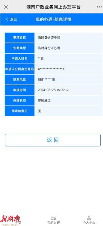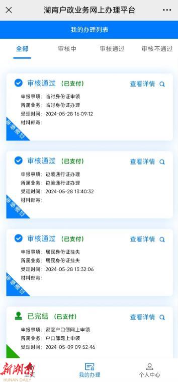 三、短信通知。申请人也可在平台首页“我的办理”中查询详情。