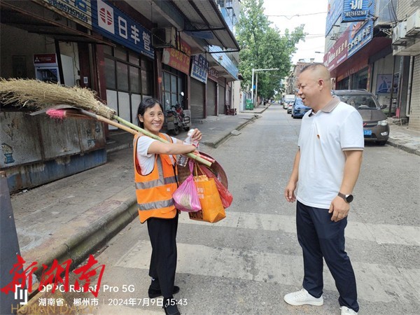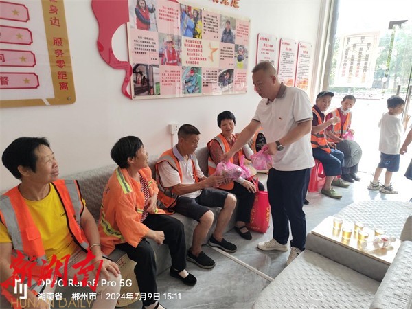 活动现场,社区工作人员将清凉饮料、防暑药品等慰问品发放到环卫工人、快递员等户外劳动者手中,提醒他们注意防暑降温,确保安全作业。