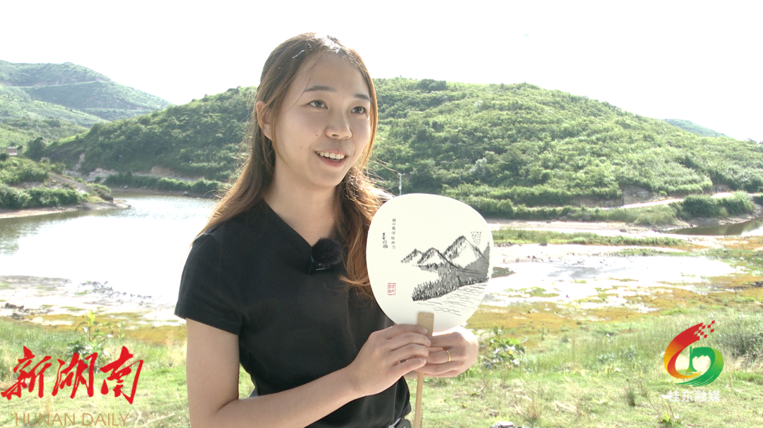 湖南师范大学老挝籍留学生童盼盼:我今天来到了万洋山,看到了很多漂亮的山和水,所以我今天有机会画了这个画,画上了万洋山美丽的山和水,这个就是我的画画,然后如果我有机会,我会带我的爸爸、妈妈、朋友一起过来这里玩。