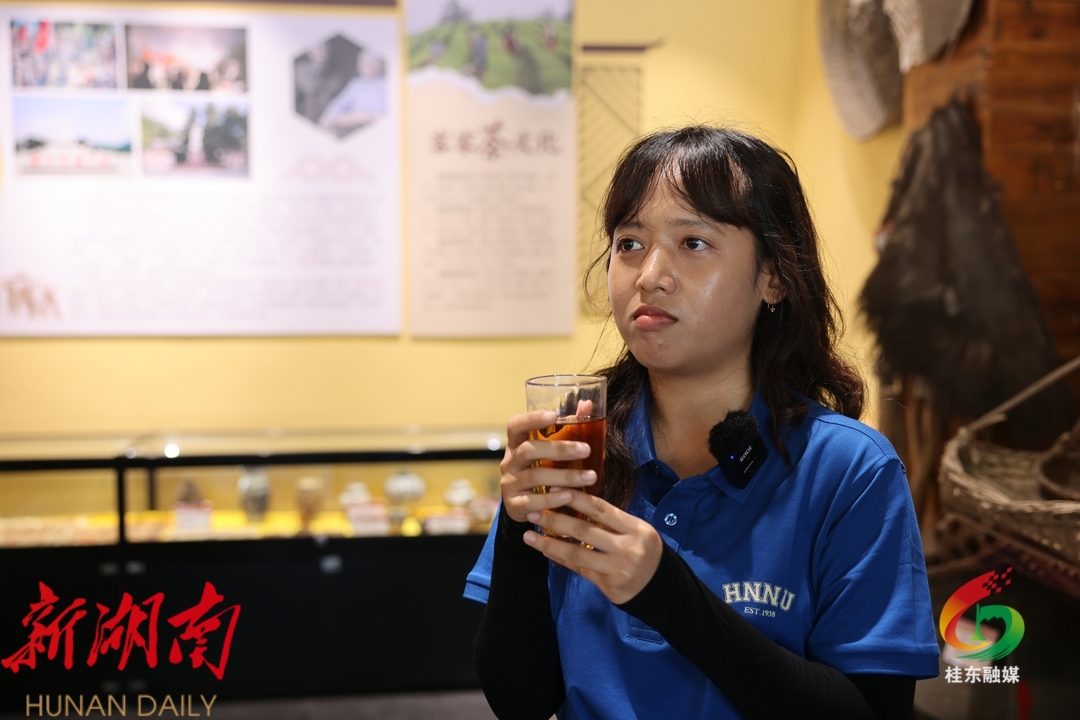 湖南师范大学印度尼西亚籍留学生尤筱丽:我觉得这个茶很好喝,虽然有甜有苦的感觉,但是还是蛮好喝的,我想把这个茶送到我妈妈(那里),变成她们最好的礼物。