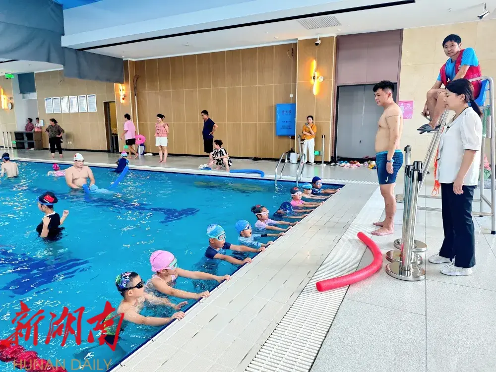 “现在天气很热,过来游泳不仅可以锻炼身体,还能避暑。刚好我非常喜欢游泳,游泳时觉得自己就像小鱼一样,很开心。”7月16日,走进西洞庭游泳馆,烈日骄阳被隔绝在室外,让人顿感凉爽舒适。蓝色的泳池里,在浅水区,有的孩子在教练的指导下认真学习游泳;有的孩子在泳池内嬉水玩耍;而在深水区,更有不少游泳者在泳池里畅游,享受着游泳带来的乐趣。
