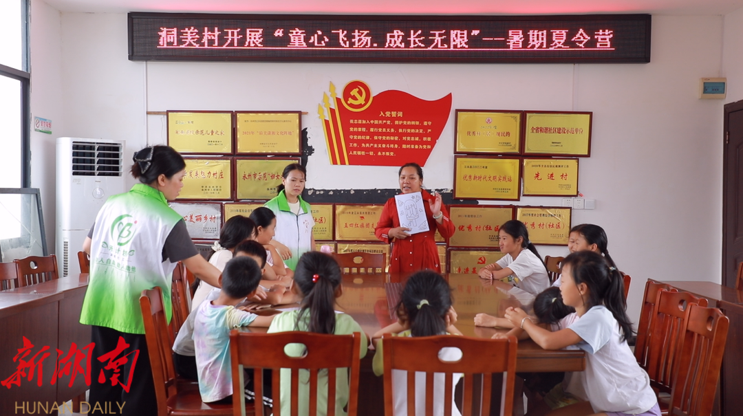 新江永客户端讯(记者 周佳琳 ) 7月16日,县民政局、县慈善总会、县永惠社会工作服务中心来到夏层铺镇洞美村,开展了一场以“童心飞扬 成长无限”为主题的暑期夏令营活动,为孩子们的假期增添了无限乐趣。