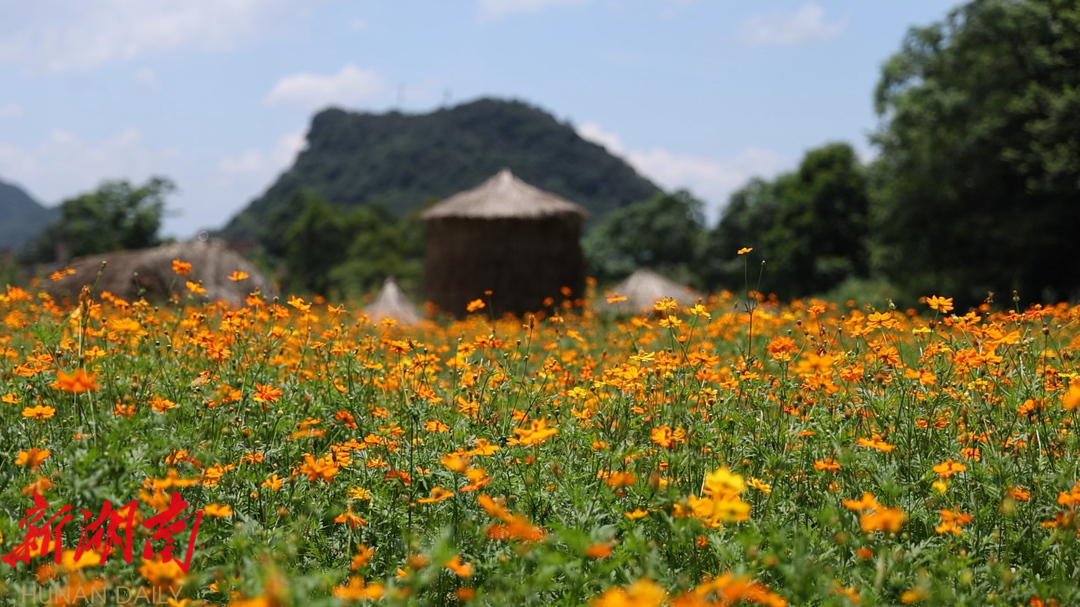 江永勾蓝瑶寨:黄秋英花海盛放 扮靓夏日风景