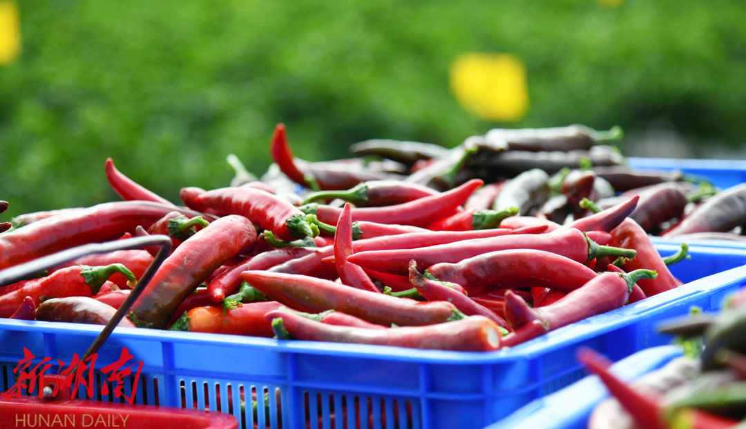 湖南日报·新湖南客户端7月18日讯(通讯员 胥扬 邹丽)其色墨红,形似粗牛角,皮薄肉厚,软糯香甜,这是湖南“米其林厨房”的隐藏“大佬”——湘阴南湖洲墨红辣椒。经过前期充足发育,7月中旬,辣椒由青色转为墨红,正是“大佬”闪亮登场的高光时刻。