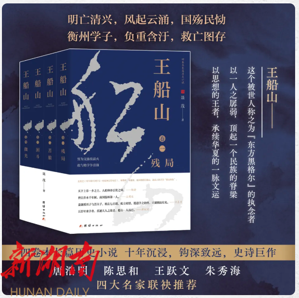 近期,中南大学教授、博士生导师聂茂以一部四卷本、108万字的长篇历史小说《王船山》,将这位伟大思想家的生平事迹与思想精髓再次呈现在世人面前,引发了广泛的社会反响和深刻的文化思考。
